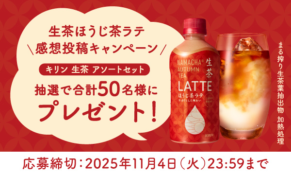 キリン【生茶ほうじ茶ラテ6本セット】が50名に当たる感想投稿キャンペーン